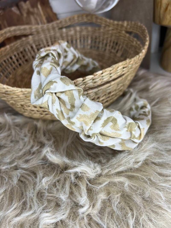 Haarreifen weiß mit Leomuster in Goldoptik